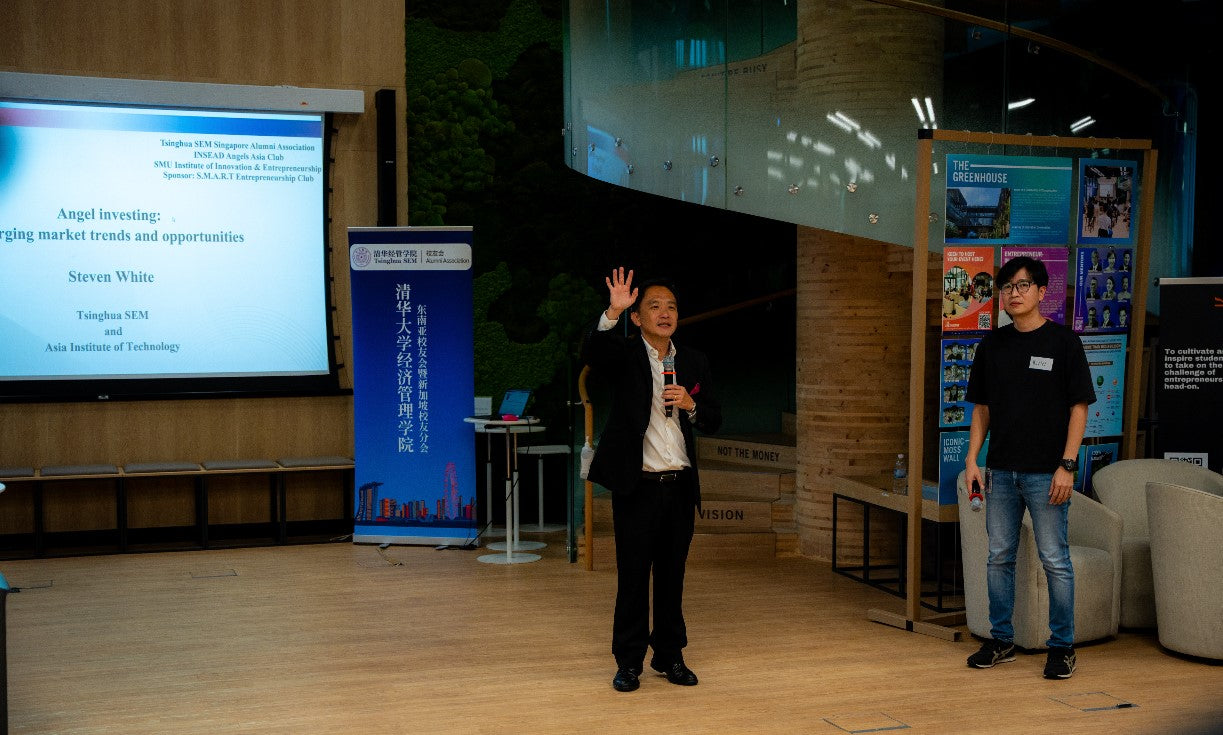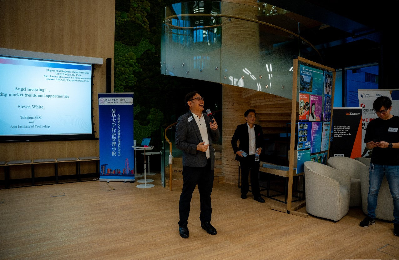 2023 年 6 月 22 日,清华经管学院新加坡校友俱乐部、欧洲工商管理学院(INSEAD)亚洲天使投资俱乐部 以及S.M.A.R.T 企业家协会在新加坡管理大学SMU Greenhouse 举行聚会,共同分享对亚洲新兴市场天使投资格局的独到见解。活动汇聚校友、企业家与投资人,促进交流与合作,为参与者提供了宝贵的投资视角与资源对接机会。