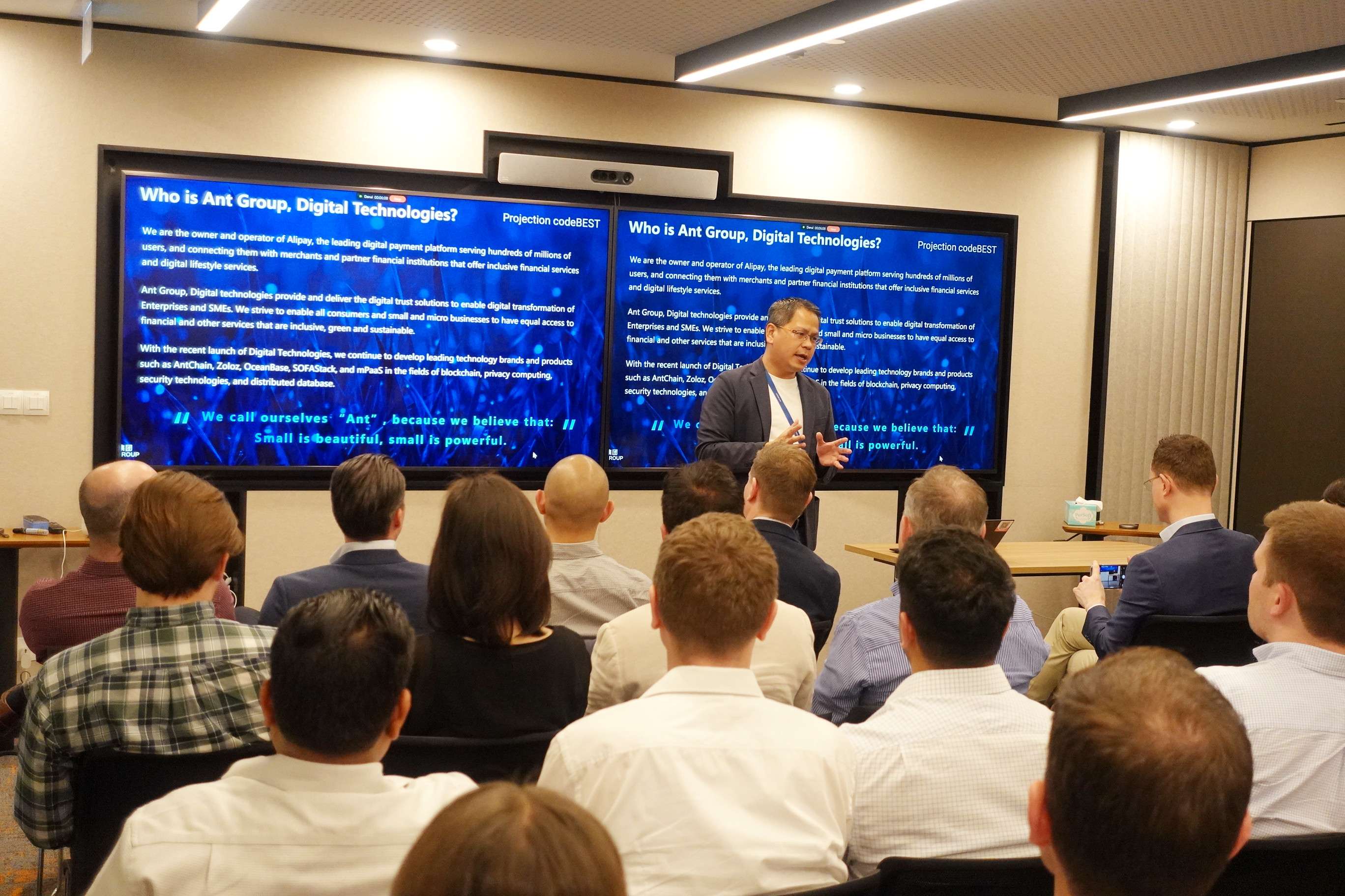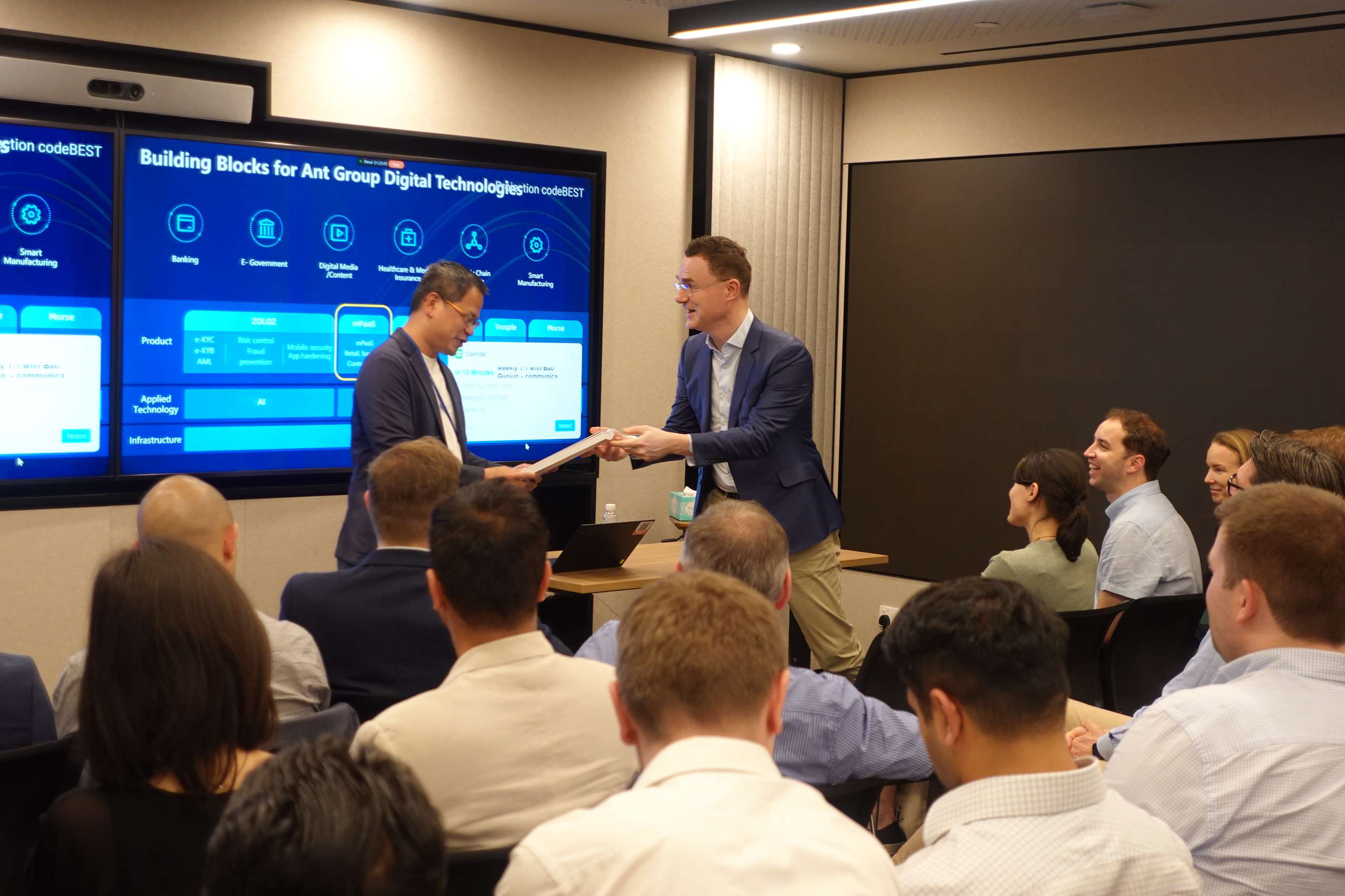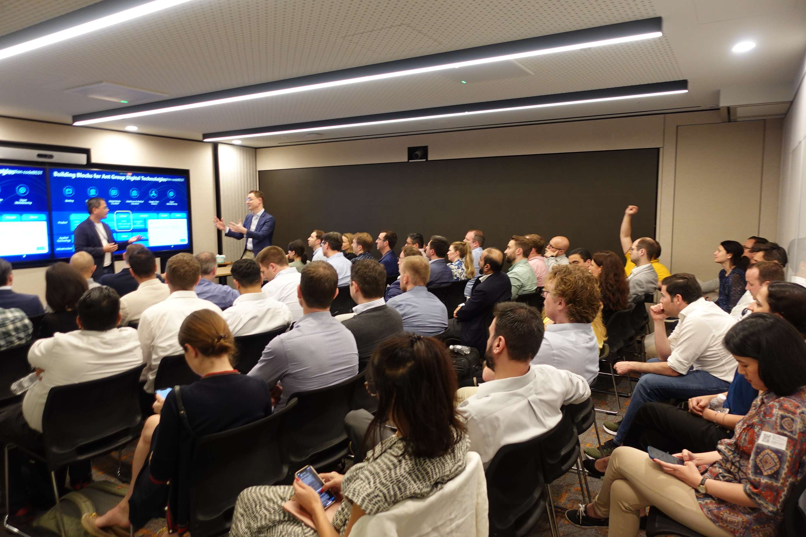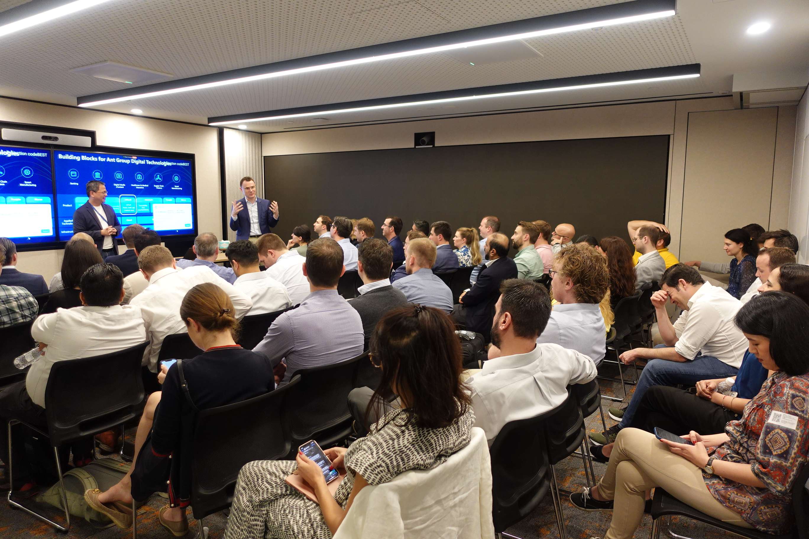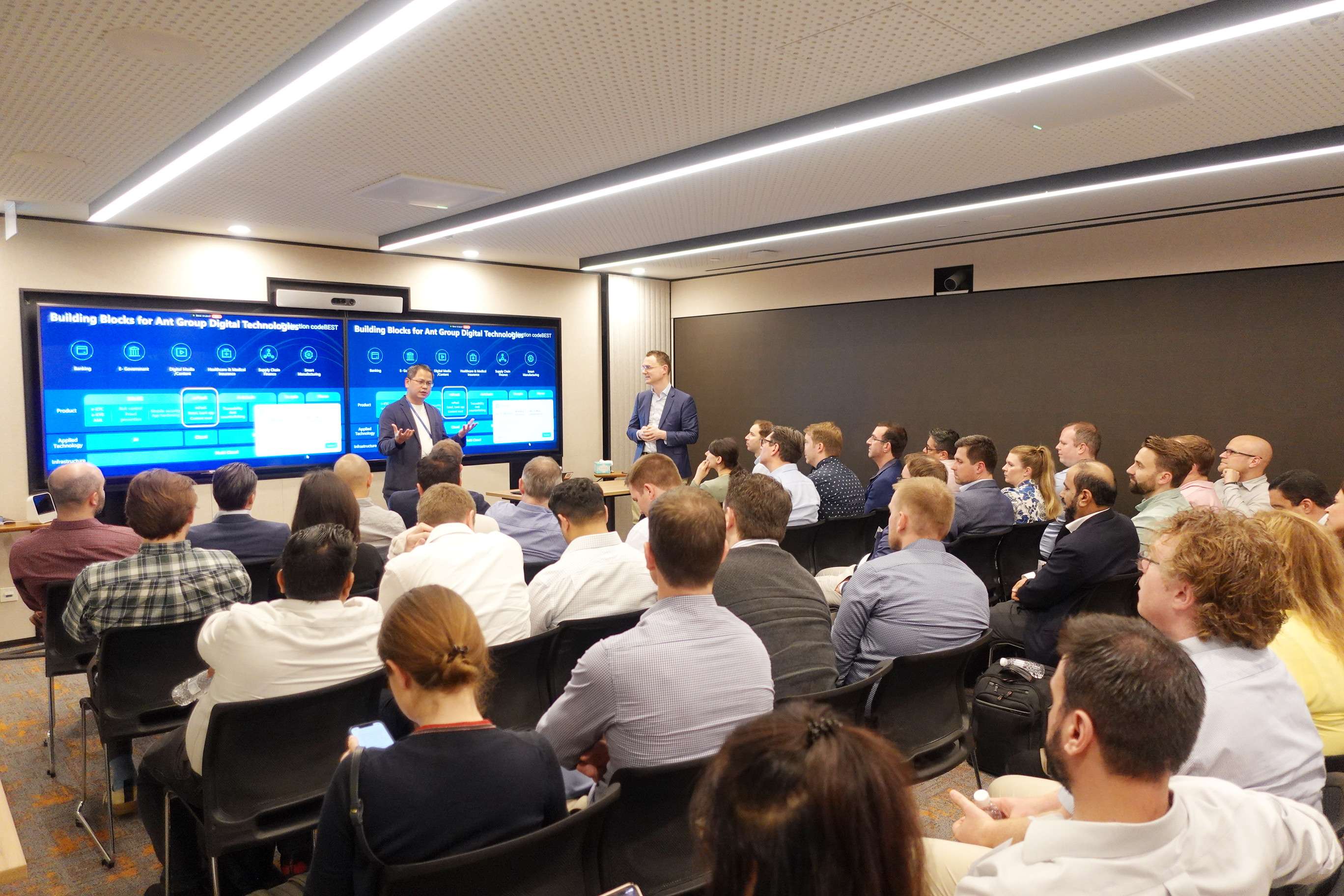 此外,圣加仑大学 EMBA学员和校友还参观了新加坡阿里巴巴蚂蚁金服办公室,蚂蚁金服代表在聚会上分享了金融科技创新的最新实践与经验,为参与者提供了宝贵的行业洞察和合作启示。
